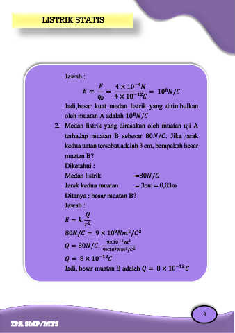 Jadi, besar muatan B adalah = 8 × 10 −12