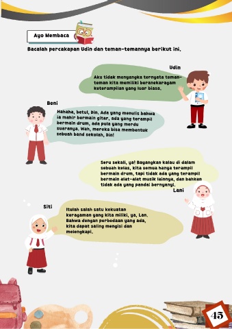 Bacalah percakapan Udin dan teman-temannya berikut ini.