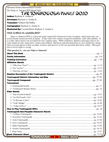 How to Play Tominogoshi NPCs ………………………………………..…………………………………….pg.: 58