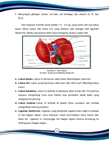 h. Menyimpan glikogen, lemak, zat besi, zat tembaga, dan vitamin (A, D, dan