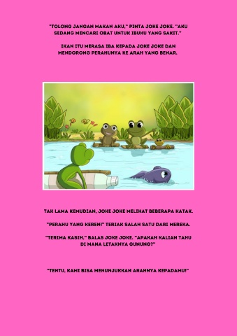 Tak lama kemudian, Joke Joke melihat beberapa katak.