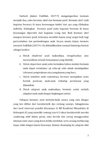 Hurlock (dalam Fadlillah, 2017:7) mengategorikan bermain