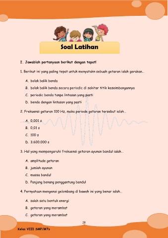 2. Frekuensi getaran 100 Hz, maka periode getaran tersebut ialah…