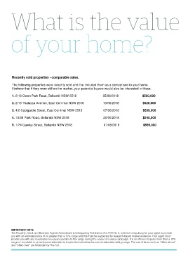 The following properties were recently sold and I’ve included them as a comparison to your home.