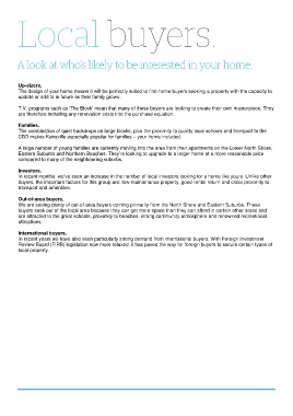buyers, the important factors for this group are: low-maintenance property, good rental return and close proximity to