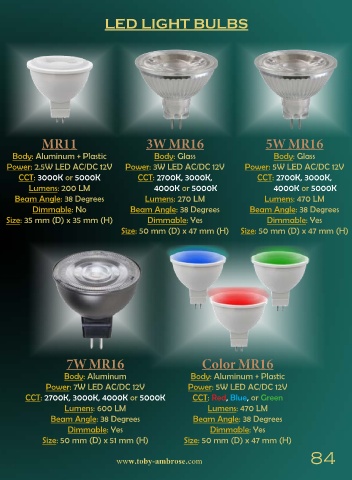 Power: 2.5W LED AC/DC 12V Power: 3W LED AC/DC 12V Power: 5W LED AC/DC 12V