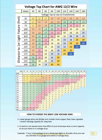 Voltage Tap Chart for AWG 12/2 Wire