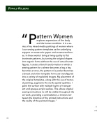 I use sewing pattern templates as the underlying support on watercolor paper and constructed box- es. In these works I bring a living quality to flat inanimate patterns, by turning the original shapes into organic forms without the use of actual human figures. I create a literal transformation in which a sewing pattern for a sleeve becomes a leg; a leg becomes a torso, the pattern of a pocket becomes a breast and other template forms are transfigured into a variety of exploited images. My placement of the original templates, along with the use of textur- al painting, augments the works spatial qualities. I paint the surface with multiple layers of transpar- ent and opaque acrylic washes. This allows original sewing instructions to still be visible throughout the art work, providing a contradiction, a tension, be- tween the directive of the printed instructions and the reality of the painted images.”