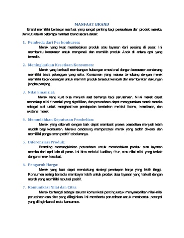 Brand memiliki berbagai manfaat yang sangat penting bagi perusahaan dan produk mereka.