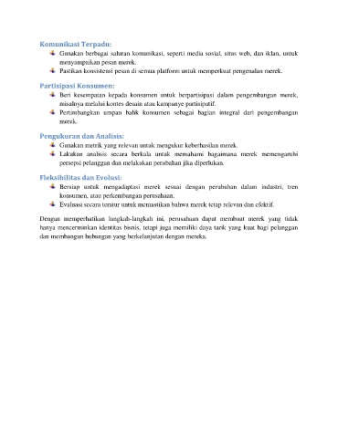 Evaluasi secara teratur untuk memastikan bahwa merek tetap relevan dan efektif.