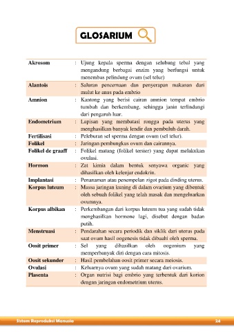 Akrosom : Ujung kepala sperma dengan selubung tebal yang