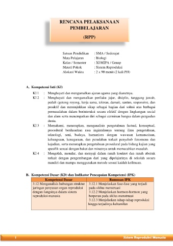 KI 1 : Menghayati dan mengamalkan ajaran agama yang dianutnya.