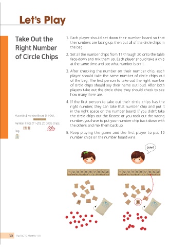 of Circle Chips 2. Set all the number chips from 11 through 20 onto the table
