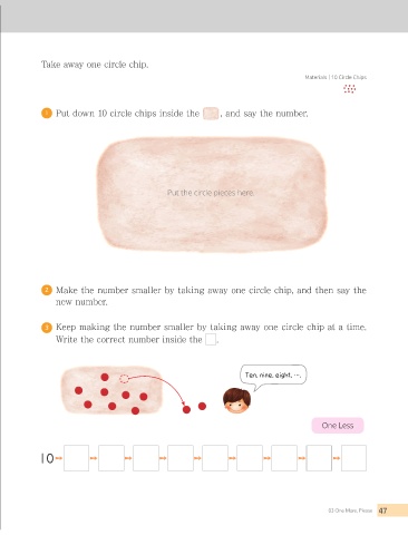2 Make the number smaller by taking away one circle chip, and then say the