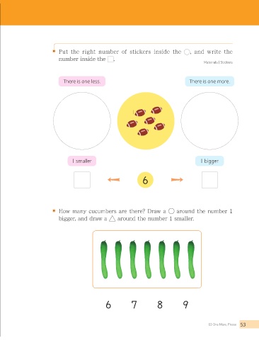 Put the right number of stickers inside the                      , and write the