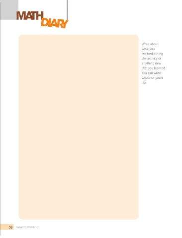 Write about what you realized during the activity or anything new that you learned. You can write whatever you’d like. 58 PlayFACTO Monthly 1-01