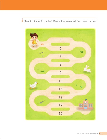 Help find the path to school. Draw a line to connect the bigger numbers.