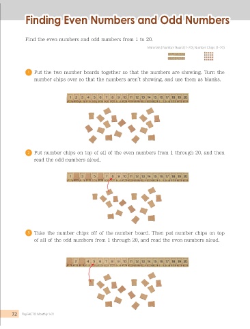 2 Put number chips on top of all of the even numbers from 1 through 20, and then