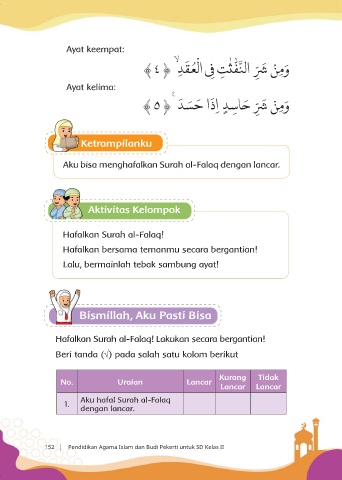 Aku bisa menghafalkan Surah al-Falaq dengan lancar.