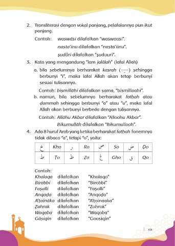 2. Transliterasi dengan vokal panjang, pelafalannya pun ikut