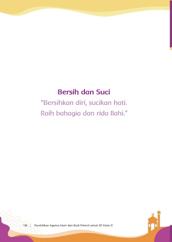 Bersih dan Suci “Bersihkan diri, sucikan hati. Raih bahagia dan rida Ilahi.” 196 Pendidikan Agama Islam dan Budi Pekerti untuk SD Kelas II