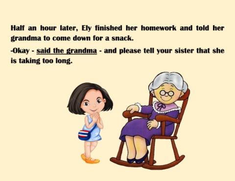 Half  an  hour  later,  Ely  finished  her  homework  and  told  her
