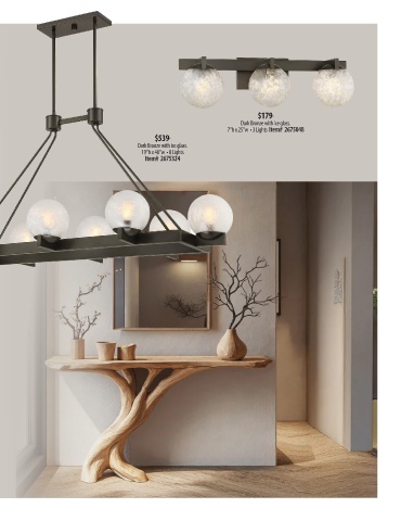 $179 . Dark Bronze with ice glass. 7”h x 25”w • 3 Lights Item# 2675048 $539 . Dark Bronze with ice glass. 19”h x 48”w • 8 Lights Item# 2675324