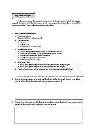 ➢ Posisi garis-garis yang dibentuk oleh pasir di tengah magnet ……………………………….