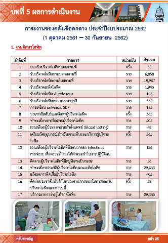 5      รับบริจาคโลหิต Autologous                                     ราย          106