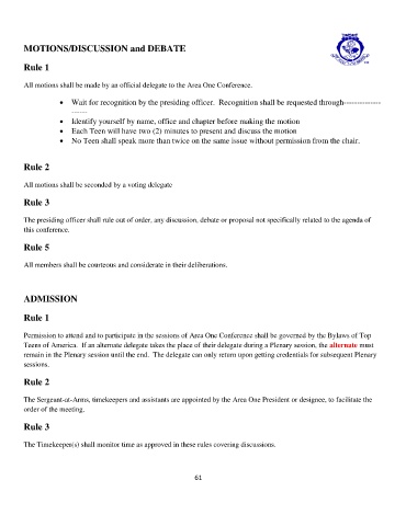The Timekeeper(s) shall monitor time as approved in these rules covering discussions.