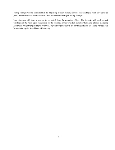 he/she is a delegate requesting to be seated. Upon recognition from the presiding officer, the voting strength will