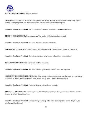 Area One Top Teens President: Financial Secretary, describe our insignia.
