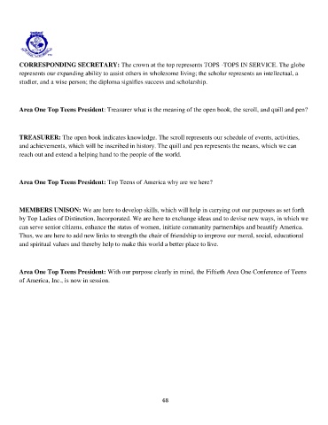 Area One Top Teens President: Treasurer what is the meaning of the open book, the scroll, and quill and pen?