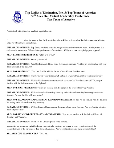 INSTALLING OFFICER: Top Teens, you have heard the pledge which the Officers have made. It is important that