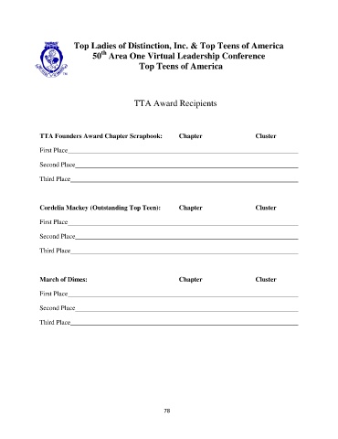 TTA Founders Award Chapter Scrapbook: Chapter Cluster