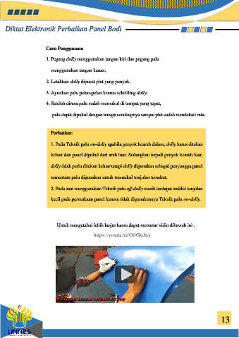 1. Pada Teknik palu on-dolly apabila penyok kearah dalam, dolly harus ditekan
