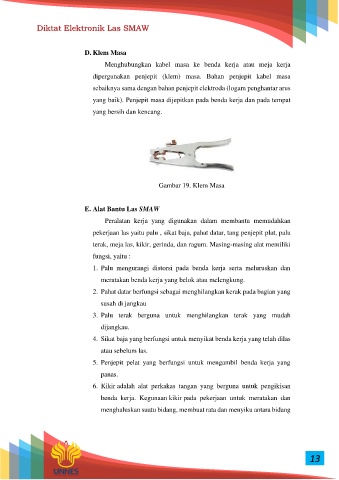 terak, meja las, kikir, gerinda, dan ragum. Masing-masing alat memiliki