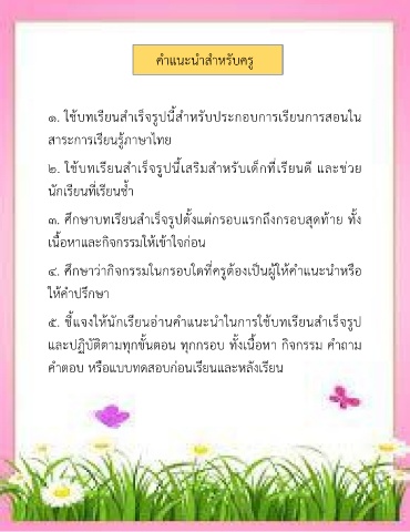 2. ใช้บทเรียนสำเร็จรูปนี้เสริมสำหรับเด็กที่เรียนดี และช่วย