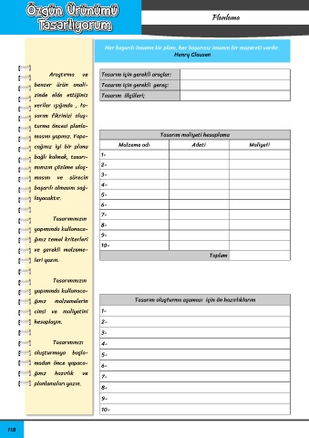 masını yapınız. Yapa- Tasarım maliyeti hesaplama