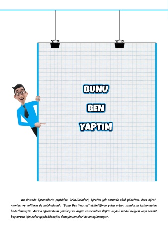 Bu ünitede öğrencilerin yaptıkları ürün/ürünleri, öğretim yılı sonunda okul yönetimi, ders öğret-