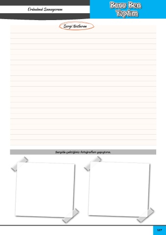 TEKNOLOJİ VE TASARIMIN TEMELLERİ Ürünümü Sunuyorum Teknoloji ve Tasarımı Öğreniyorum Sergi Notlarım y apış arı r afl n . tı r ı ğ e çekti d Tasarladığınız model ,maket veya prototip varsa yapıştırınız. Sergi ğ fo to z i ni 127