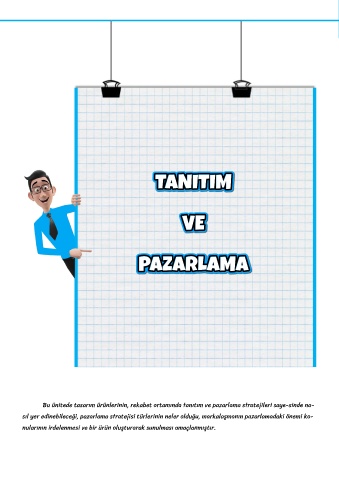 Bu ünitede tasarım ürünlerinin, rekabet ortamında tanıtım ve pazarlama stratejileri saye-sinde na-
