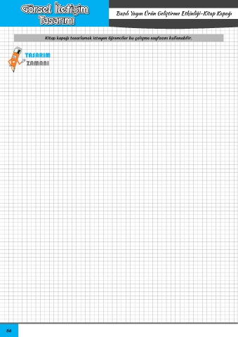 TEKNOLOJİ VE TASARIMIN TEMELLERİ Basılı Yayın Ürün Geliştirme Etkinliği-Kitap Kapağı Teknoloji ve Tasarımı Öğreniyorum Kitap kapağı tasarlamak isteyen öğrenciler bu çalışma sayfasını kullanabilir. 56