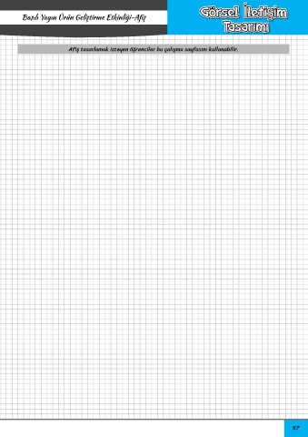 TEKNOLOJİ VE TASARIMIN TEMELLERİ Basılı Yayın Ürün Geliştirme Etkinliği-Afiş Teknoloji ve Tasarımı Öğreniyorum Afiş tasarlamak isteyen öğrenciler bu çalışma sayfasını kullanabilir. 57