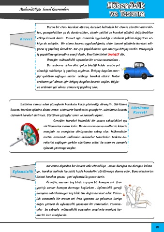 doğru gitmesi de eylemsizlik yasasının bir sonucudur. Tasarım-