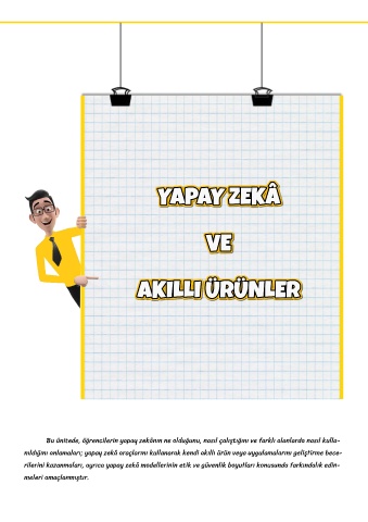 Bu ünitede, öğrencilerin yapay zekânın ne olduğunu, nasıl çalıştığını ve farklı alanlarda nasıl kulla-
