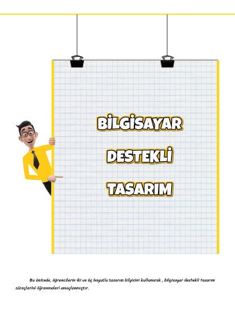Bu ünitede, öğrencilerin iki ve üç boyutlu tasarım bilgisini kullanarak , bilgisayar destekli tasarım süreçlerini öğrenmeleri amaçlanmıştır. 48