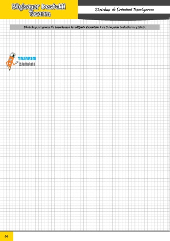 TEKNOLOJİ VE TASARIMIN TEMELLERİ Sketchup ile Ürünümü Tasarlıyorum Teknoloji ve Tasarımı Öğreniyorum Sketchup programı ile tasarlamak istediğiniz fikrinizin 2 ve 3 boyutlu taslaklarını çiziniz. 56