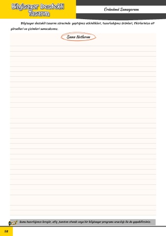 Bilgisayar destekli tasarım sürecinde yaptığınız etkinlikleri, tasarladığınız ürünleri, fikirlerinize ait
