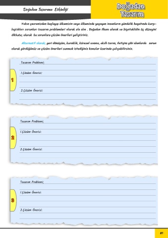 laştıkları sorunları tasarım problemleri olarak ele alın . Doğadan ilham alarak ve biyotaklidin üç düzeyini